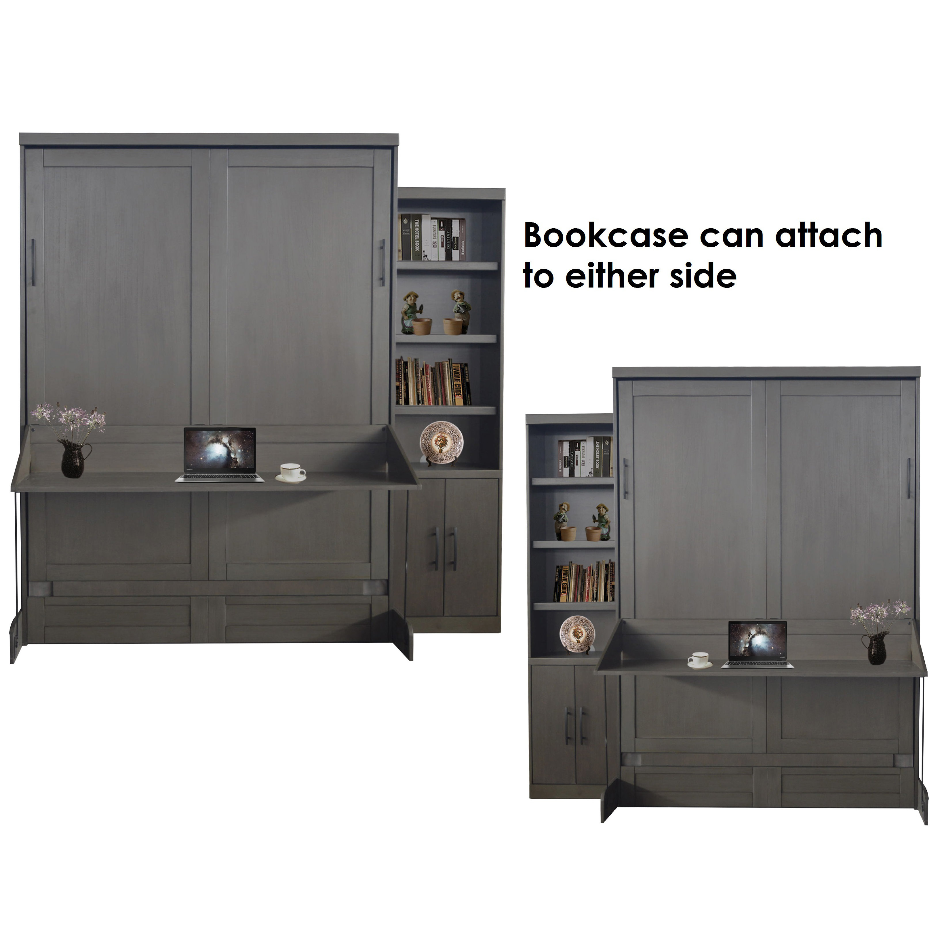 Queen Devon Murphy Bed with Door and Drawer Bookcases and ...