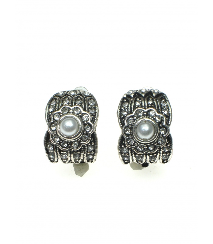 Halfronde clip oorbellen met pareltje en strass steentjes