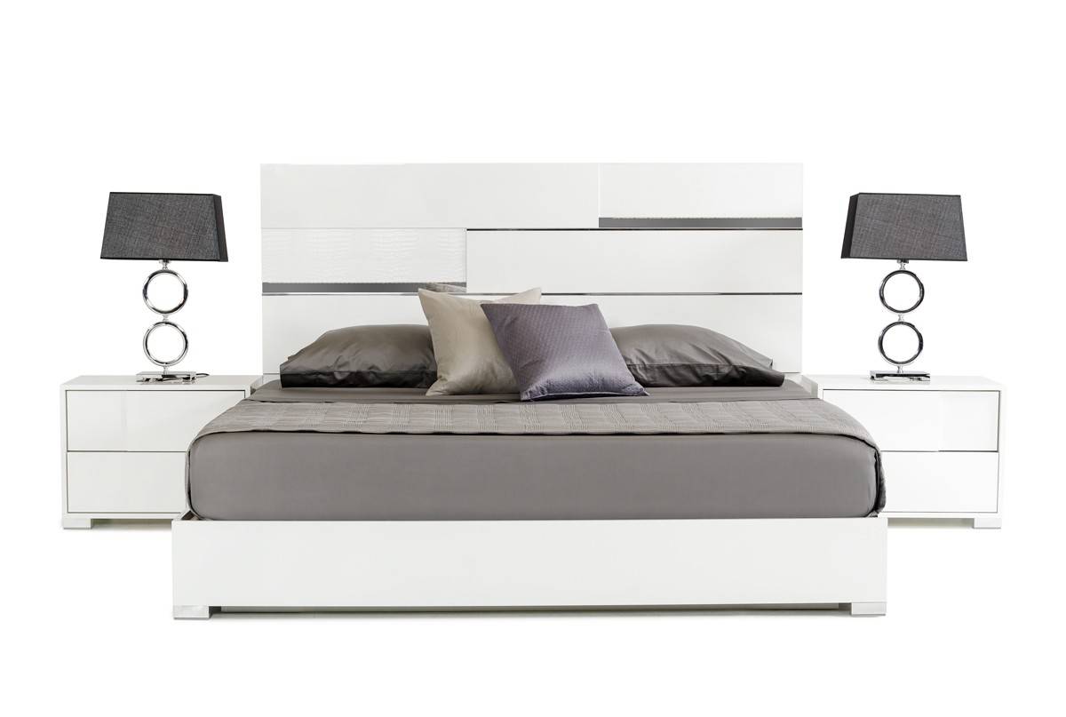 Modern White Finished Platform Bed with Long Headboard ...