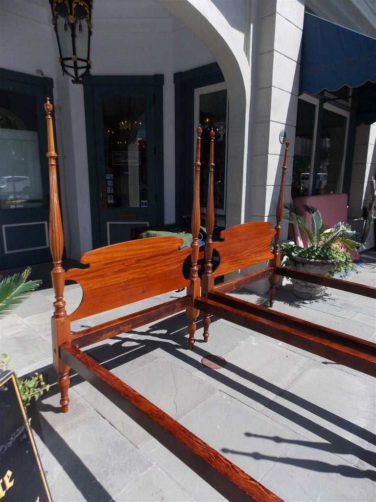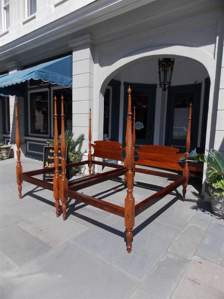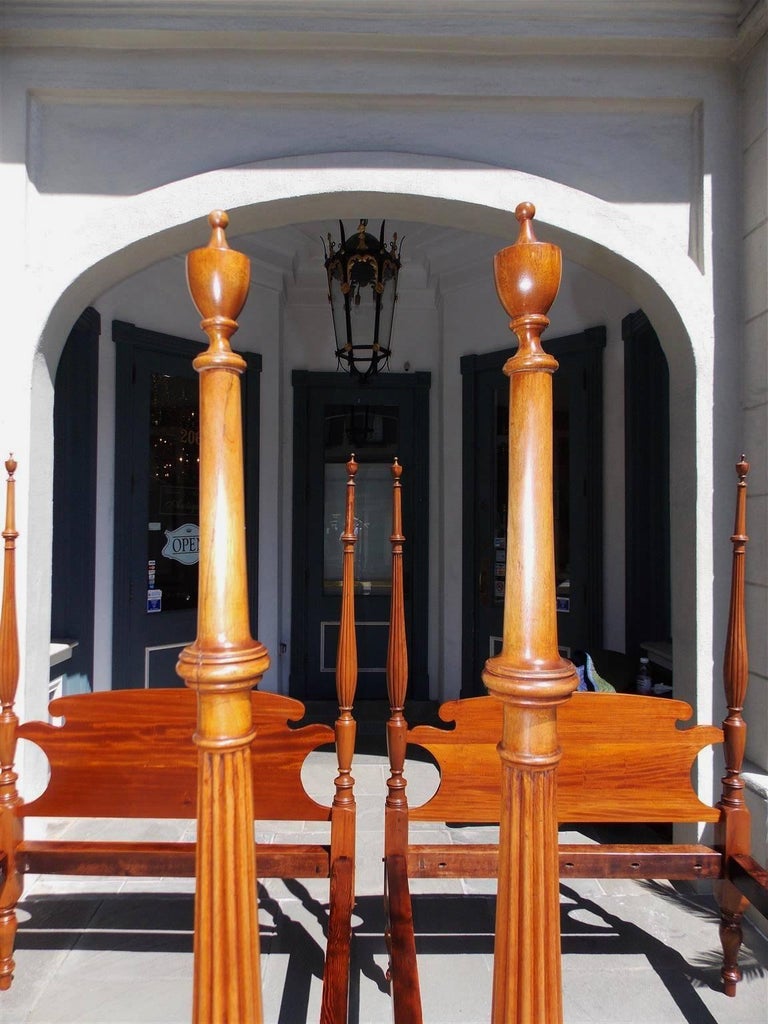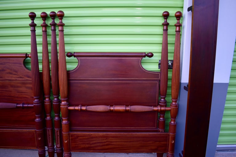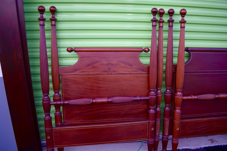 Pair of American Sheraton Mahogany Four-Poster Reeded Twin ...