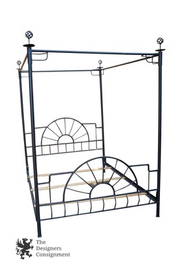 Contemporary Black Steel Canopy Bed Frame Finials Full ...