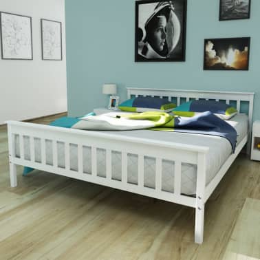 vidaXL Double Bed 5FT King Size/200x150 cm Pinewood White ...